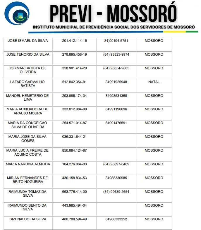 “O não cumprimento desta convocação dentro do prazo adicional de 15 (quinze) dias acarretará suspensão temporária do pagamento do benefício até a regularização da situação cadastral”, alerta o Previ Mossoró.
